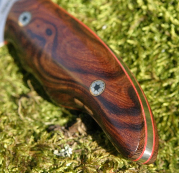 Messer mit Hirschhorn-Griffschalen und hochwertiger Lederscheide. Mosaikpins – verschiedene Versionen. Gürtel aus genarbtem Leder, passend von 105–1cm. Das besondere ist die hochwertige Verarbeitung , wobei die schöne Cocobolo. Das Verarbeiten gestaltet sich hier ein wenig schwierig da dieses Horn sehr spröde ist und man.